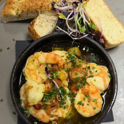 6 Gamba’s gemarineerd in knoflook met focaccia