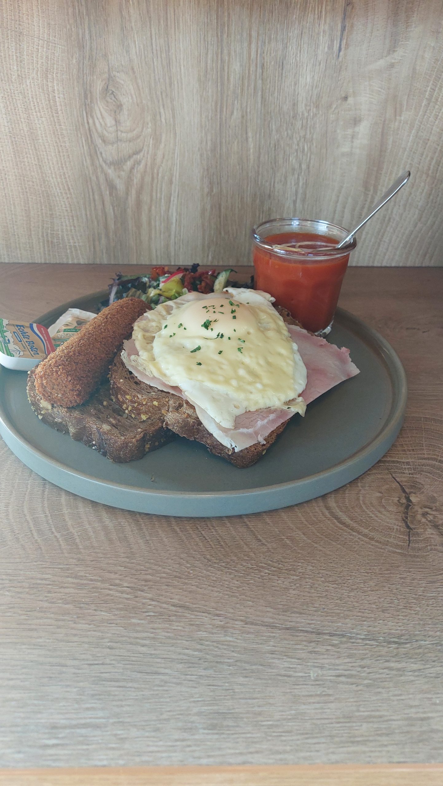 12 uurtje (tomatensoep, broodje kroket, broodje ham & kaas met gebakken ei)